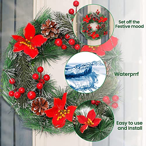 Imagine your front door adorned with this beautiful wreath, featuring lush pine branches, vibrant red poinsettia flowers, and sparkling LED lights that twinkle in the evening. Made from durable materials, this artificial wreath is designed to last season after season, saving you time and money on replacements.