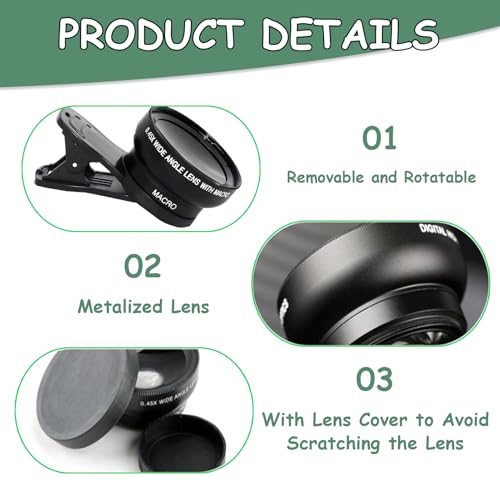 This kit combines a powerful **12X Macro Lens** and a **0.45X Wide Angle Lens**, making it perfect for every photography scenario. The macro lens allows you to discover the hidden beauty of nature, revealing textures and details that are often missed by the naked eye. Meanwhile, the wide-angle lens is ideal for capturing group shots or stunning vistas, helping you include everyone and everything in your frame.