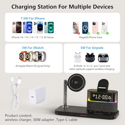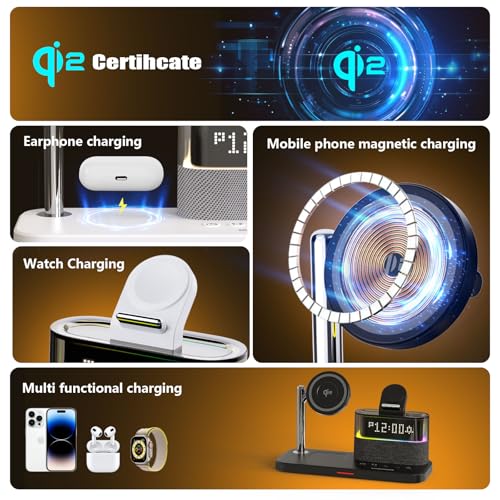 3 In 1 Wireless Charging Station with Alarm Clock,Qi2 Wireless Charger for iPhone17 16 15 14 13 Pro Max AirPods Apple Watch,Docking Station With Light For Bedside,Tech Gadgets Gifts for Men
