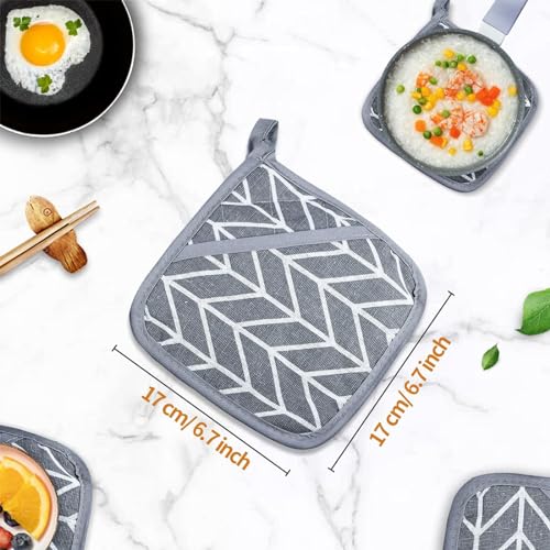 These pot holders are also perfect for various cooking scenarios. Whether you're baking cookies, handling hot pots, or serving up a delicious meal, they offer the versatility and protection you need. Their elegant grey lattice design adds a touch of sophistication to your kitchen, making them not just functional but also aesthetically pleasing.
