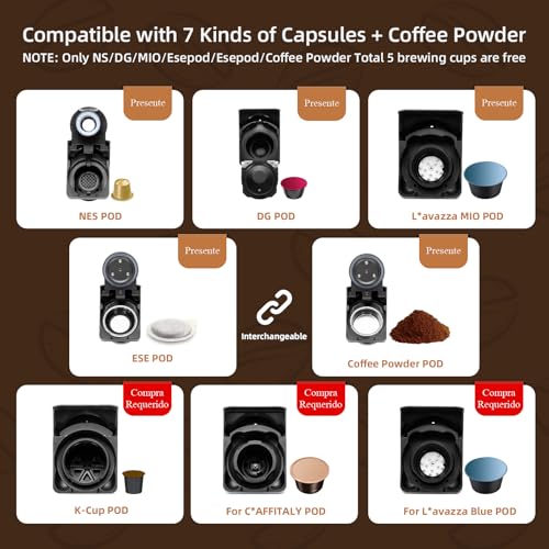 Upgrade 5 in 1 Espresso Single Serve Coffee Machine for Nespresso Original/Dolce Gusto/Mio/Ground Capsule and ESE Coffee Pods,19 Bar Automatic Compatible Capsule Coffee Machine(AC-513KF/F)