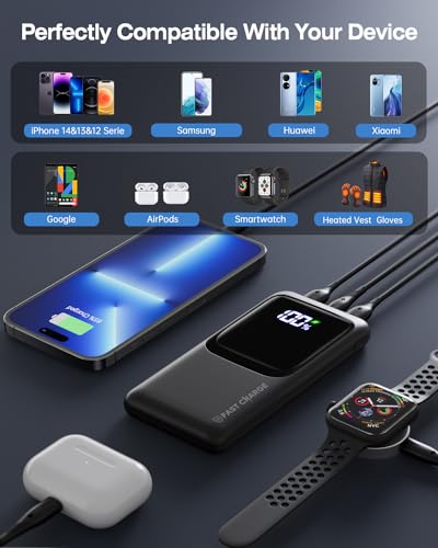 With the capacity to charge your iPhone 14 over two times or your Galaxy S21 nearly one and a half times, it’s perfect for ensuring you never run out of battery when you need it most. The three output ports allow for simultaneous charging, whether you're sharing with friends or powering multiple devices at once.