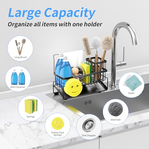 Imagine having a dedicated space for your dish soap, sponges, and brushes, all neatly organised at your fingertips. The sloped drainage feature ensures that your cleaning tools dry quickly, preventing the build-up of harmful bacteria. Plus, with its generous storage capacity—able to hold multiple sponges and brushes—you'll never have to rummage through drawers again!