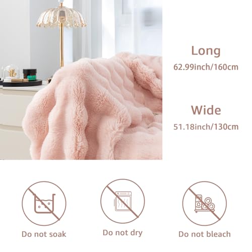 Throw Blanket - 51×63in Soft Cozy Blanket, Super Comfort Oversized Warm Thick Bubble Plush Rabbit Faux Fur Throw Blanket,Light Weight Fleece Warm Throw Blanket for Bed(Pink)