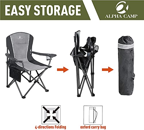 ALPHA CAMP Camping Folding Chair for Heavy People Portable Heavy Duty Chair Support 160 KG Oversized camp chair Outdoor for Adult with Cup Holder and Side Pocket, Black/Gray