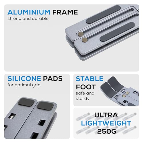 - Introducing the ultimate solution for your laptop needs: our Aluminium Alloy Foldable Portable Laptop Stand. Designed for those who value both comfort and convenience, this innovative stand is perfect for your home, office, or on-the-go lifestyle. Weighing in at a mere fraction of your laptop, it effortlessly folds down to a compact size, making it a breeze to carry in its stylish carry bag. The simple opening and closing mechanism ensures you can set up your workspace anytime, anywhere.