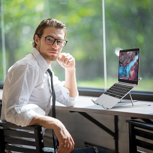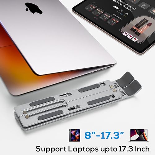 Laptop Stand for Desk, Aluminum Alloy Foldable Portable Laptop Holder, Silicone Anti-Slip, Adjustable Laptop Riser, 6-Position Adjustment, Ventilated Cooling Notebook Stand, for 10-15.6” Laptops