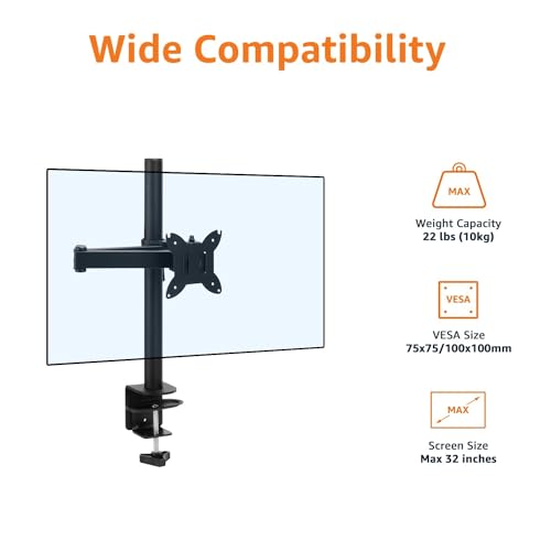 Amazon Basics Adjustable Single Computer Monitor Arm Mount, Holds Monitors up to 32 Inches (81.3 cm), Black