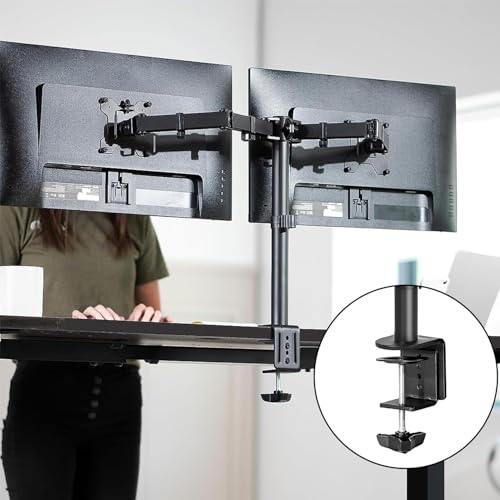Imagine effortlessly switching between your tasks with two monitors at your fingertips, each perfectly positioned for your viewing pleasure. The Amazon Basics Dual Monitor Stand supports screens from 13 to 27 inches, accommodating a variety of monitor sizes for your home office or gaming setup.