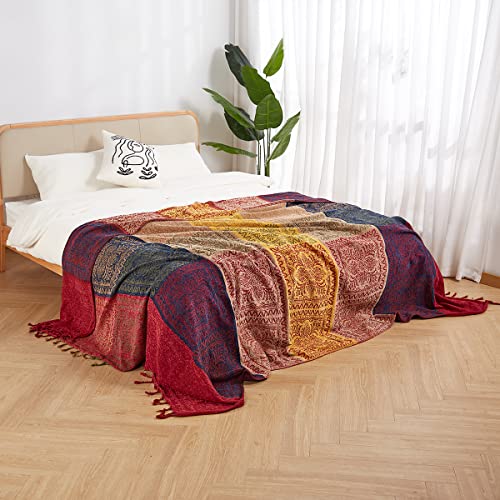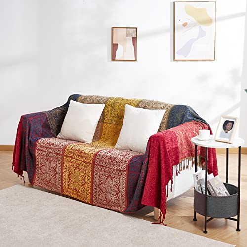 amorus Chenille Jacquard Tassels Throw Blanket Sofa Chair Cover Tablecloth - Colorful Tribal Pattern (86 Inch x 102 Inch)