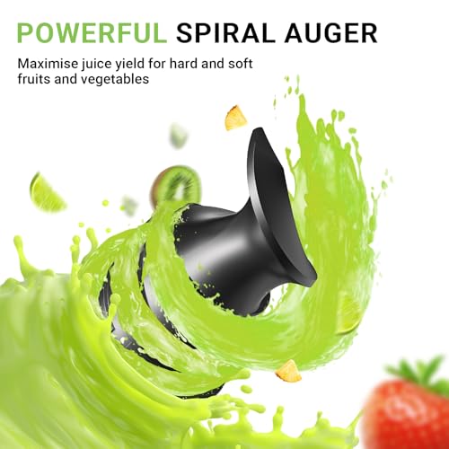 Imagine starting your day with a refreshing glass of juice made from your favourite fruits, all extracted with maximum flavour and nutrients. The upgraded auger ensures a high juice yield, while the anti-drip design keeps your countertop clean, allowing you to focus on what matters most – enjoying your delicious juice!