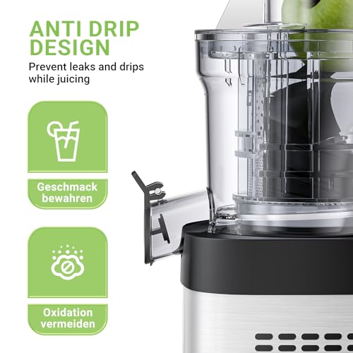 Are you ready to elevate your juicing game? The AMZCHEF Cold Press Juicer is here to make juicing not only easier but also more enjoyable! With its large 80mm feed chute, you can juice whole fruits and vegetables, saving you time and effort in the kitchen.