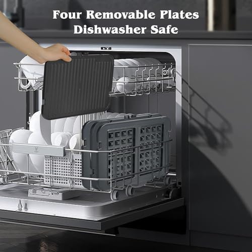 The non-stick coated plates are dishwasher safe, making cleanup quick and easy. Simply remove them and place them in the dishwasher or wash them by hand with warm soapy water.