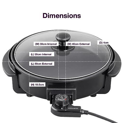 Andrew James Multi Cooker, Electric Non-Stick Frying Pan with Lid Large Skillet Multi-Function Camping Cooker for Paella Frying Breakfast Energy Efficient Adjustable Temperature Control 30cm 1350W