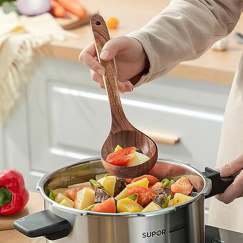 The AOOSY utensils are crafted from high-quality natural Acacia wood, ensuring durability and style in your kitchen.