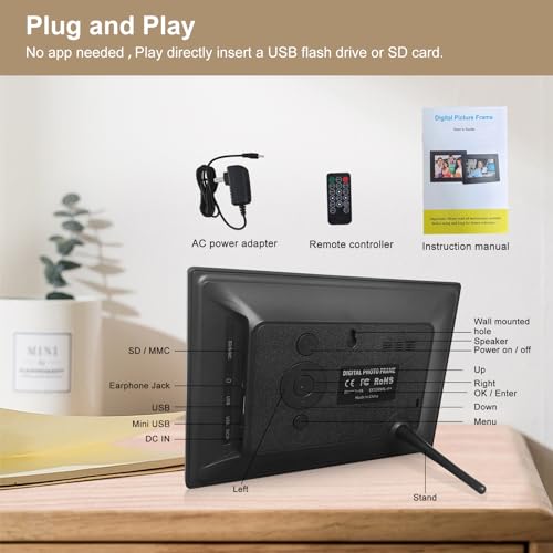 Digital Photo Frame, 7 Inch Digital Picture Frame Full IPS Display Electronic Photo Frame Video Music Playback Calendar Alarm Clock with Remote Control, USB/SD Card Slots (Non-WiFi)