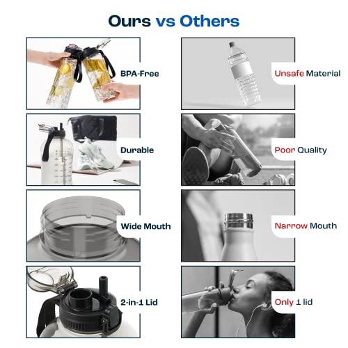 One of the standout features is the dual-function lid, which allows you to sip or chug your water, catering to your preferences. Made from durable, BPA-free plastic, this bottle is built to withstand the demands of your busy lifestyle.