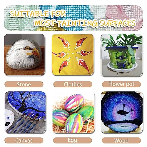 - Elevate your artistic journey with the Artecho Acrylic Paint Set, featuring 18 stunning, vibrant colours housed in 2-ounce (59ml) bottles. This new version not only offers a delightful array of hues but also comes with a convenient flip-top cap for easy access and mess-free pouring. Whether you are a beginner or a seasoned artist, these acrylic paints are designed to glide smoothly onto various surfaces, including canvas, paper, wood, and even ceramic, ensuring a glossy finish that dries quickly.