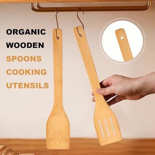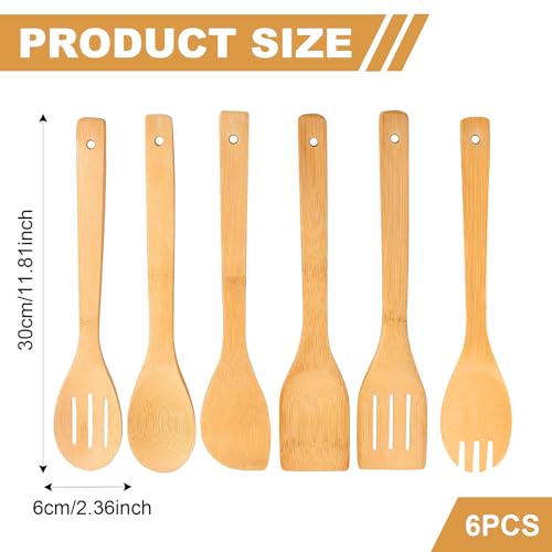 - Introducing the ASIRYVA 6-Piece Bamboo Wooden Utensil Set, your new kitchen essential that blends functionality with elegance! This premium collection features six meticulously crafted bamboo spoons and spatulas, perfect for a variety of cooking tasks. Whether you're flipping pancakes, tasting that delectable sauce, or serving up a sumptuous meal, these utensils are designed to excel in every scenario.
