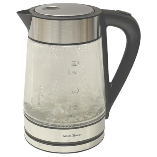 - Introducing the Astro Electra 1.7L Electric Glass Kettle, your ultimate kitchen companion for rapid boiling and effortless brewing. With a powerful 2200W heating element, this kettle ensures you enjoy your tea, coffee, or cooking needs in no time at all. Its generous 1.7L capacity allows you to prepare ample water for family gatherings or cosy evenings at home, making it the perfect addition to any kitchen.