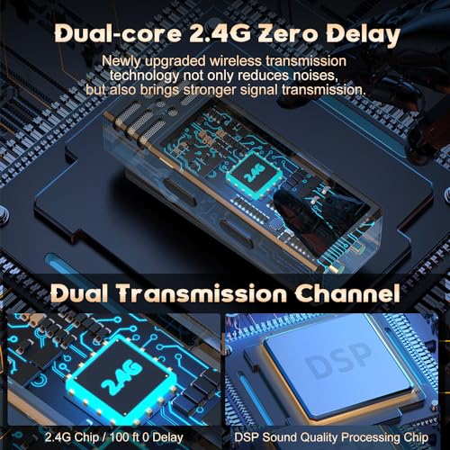 With a remarkable transmission range of up to 100 feet, you can roam freely while still delivering crisp sound to your audience. Whether you're vlogging, streaming, or conducting interviews, the AURTEC microphone ensures a stable connection with no audio delays. The intelligent DSP technology includes a one-click noise cancellation feature, ensuring that your voice remains clear and professional, free from distracting background sounds.