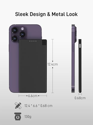 - Introducing the Auskang Power Bank with Built-in Charging Cable, your perfect companion for staying charged on-the-go! Measuring just 12.5 cm x 6.6 cm x 0.68 cm and weighing a mere 130g, this ultra-slim and lightweight power bank fits effortlessly into your pocket or wallet, making it an ideal choice for your busy lifestyle. Whether you're commuting, travelling, or simply out for a coffee, you'll love the convenience of having a reliable power source right at your fingertips.