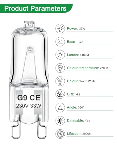 If you’re looking to enhance your lighting experience, the AUZOSL G9 Halogen Bulbs are an excellent choice. Perfect for both residential and commercial settings, these bulbs combine efficiency and aesthetic appeal. With a powerful 33W output and a warm 2700K light temperature, they create an inviting atmosphere that’s ideal for any occasion.