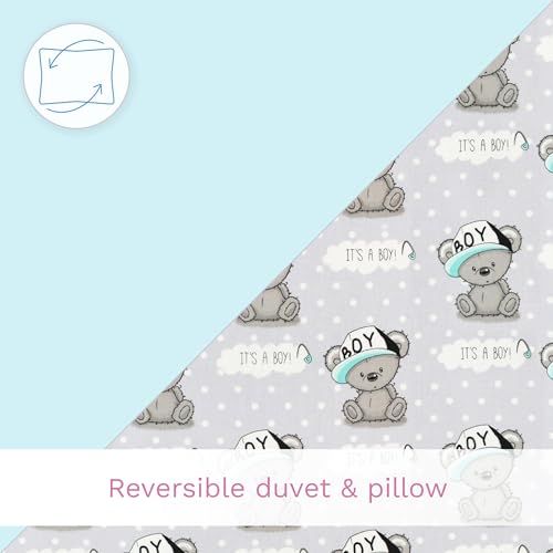 Parents will appreciate the practicality of this bedding set as it is machine washable, allowing for easy maintenance and care. With its additional quilting, the filling remains securely in place, ensuring that the duvet and pillow maintain their shape and softness over time.