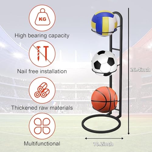 Are you tired of tripping over sports balls scattered across your home? The Ryfpdml 3-Tier Ball Storage Rack is here to help! This innovative storage solution not only helps you organise your basketballs, footballs, and volleyballs but also adds a touch of modern elegance to your living space.