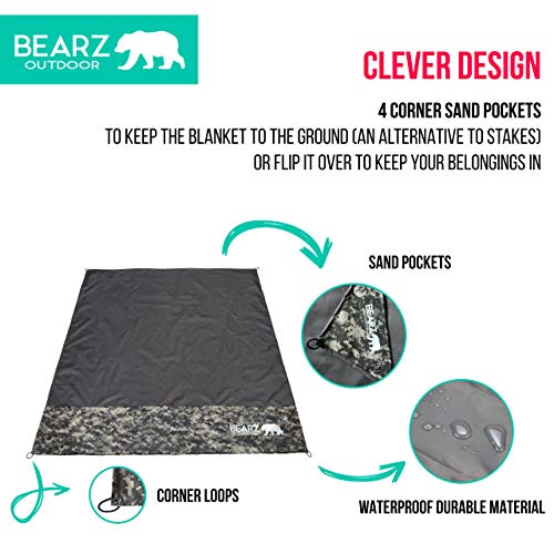 Its waterproof and sandproof features ensure you stay dry and comfortable no matter the conditions, while the lightweight fabric makes it easy to carry. With a clever design that includes corner pockets for stability and carabiners for convenient attachment, the BEARZ Outdoor Travel Blanket is a game-changer.
