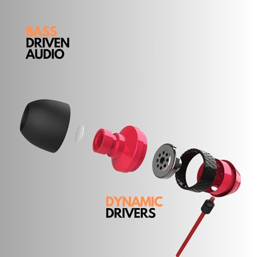 Betron B25 Earphones, Noise Isolating In-Ear Wired Headphones with Strong Bass, Tangle-Free Cord, Lightweight, Carry Case and Soft Earbud Tips, Red