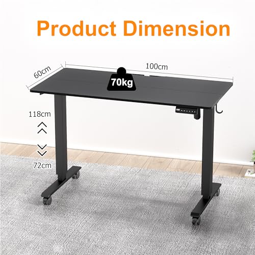 BEXEVUE Height Adjustable Electric Standing Desk - 100x60 cm Stand Up Table Desk Thick Splice Board, Smart Control Panel 3 Memory Heights, Anti-Collision System, Sit Stand Desk for Home Office