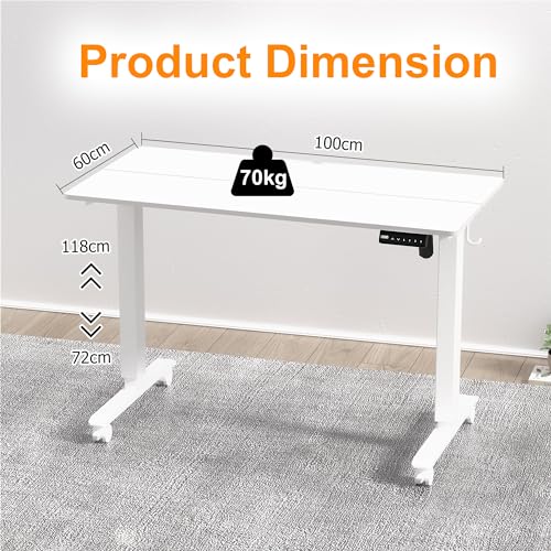 BEXEVUE Height Adjustable Electric Standing Desk - 100x60 cm Stand Up Table Desk Thick Splice Board, Smart Control Panel 3 Memory Heights, Anti-Collision System, Sit Stand Desk for Home Office