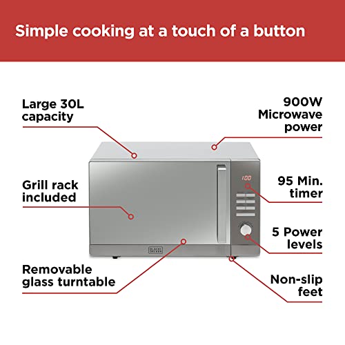 - Discover the ultimate cooking companion with the BLACK+DECKER BXMZ24038GB 30 Litre Combination Microwave. This versatile appliance combines a powerful 900W microwave, a robust 1100W grill, and a convection oven with a staggering 2500W output, allowing you to prepare a wide array of delicious meals effortlessly. Whether you're defrosting, grilling, or baking, this microwave simplifies your cooking process with its innovative 3-in-1 functionality, saving you precious time in the kitchen.