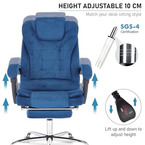 Blisswood Executive Office Chair With Footrest & Lumbar Support Ergonomic Recliner Computer Desk Chair Adjustable Back Rest Heavy Duty 360° Swivel Gaming Chair Blue for Home Office with Tilt Function