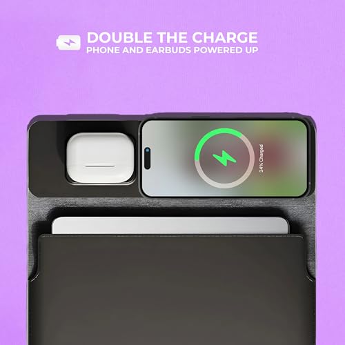 Laptop Sleeve with Wireless Charging | 4-in-1 Leather Laptop Case, Mousepad & Deskpad | Fast Charging for Phones & Earbuds | Protects Laptops, Compatible with MacBook and More (Black, 13-14 Inch)