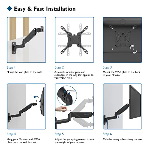 The BONTEC Monitor Wall Mount offers unparalleled versatility with its gas spring arm, allowing you to adjust your screen to the perfect height and angle. This not only promotes better posture but also reduces the risk of discomfort and pain associated with prolonged screen time.