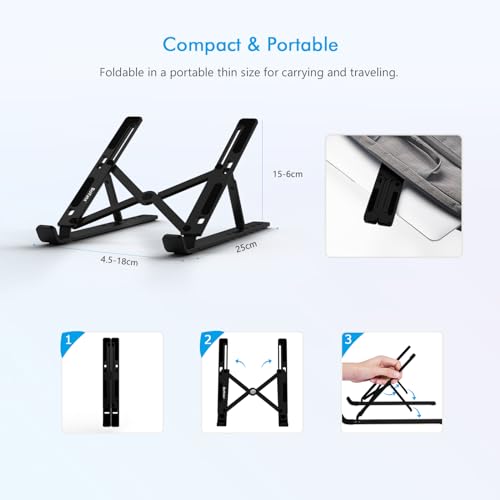 With six adjustable height levels, you can easily customise your setup to find the perfect angle for typing or viewing, reducing the likelihood of strain on your back and neck. The robust aluminium construction not only ensures durability but also aids in heat dissipation, keeping your device cool during those long working hours.