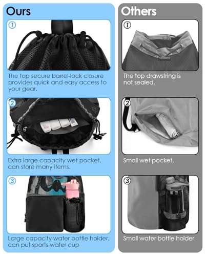If you’re an outdoor enthusiast who loves swimming, surfing, or simply spending a day at the beach, you know how crucial it is to have the right gear. The BROTOU Drawstring Mesh Swimming Bag is not just a bag; it’s an essential companion for anyone who enjoys water sports and outdoor activities. With a spacious 30-litre capacity, this backpack offers ample room for all your essentials, from swimwear to towels and beyond.