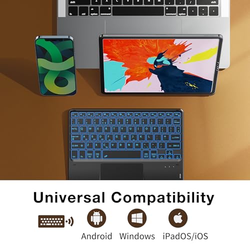 CACOE Keyboard with Touchpad,10 Inch QWERTY Wireless Keyboard, 7 Colors Illuminated Backlit keyboard, Bluetooth Keyboard for iPad/Samsung, Lenovo Tablet/Windows/iPad Pro/iPad mini, Black