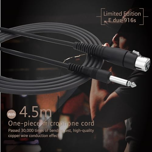 With a wide frequency response, it effortlessly captures the nuances of your voice and instruments, making it a versatile tool for any performer. The included 14.7ft XLR to 1/4” cable gives you the freedom to move around on stage, connecting seamlessly to amplifiers and karaoke machines.