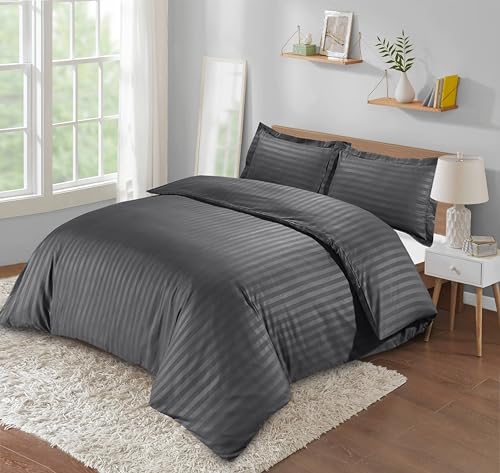 Are you looking to enhance your bedroom's elegance while ensuring a comfortable night's sleep? The Casabella Grey Satin Stripe King Size Duvet Cover Set may be just what you need. This stunning duvet cover not only looks chic with its refined satin stripe pattern, but it also promises a soft and smooth feel thanks to its high-quality Poly Cotton Microfiber fabric.