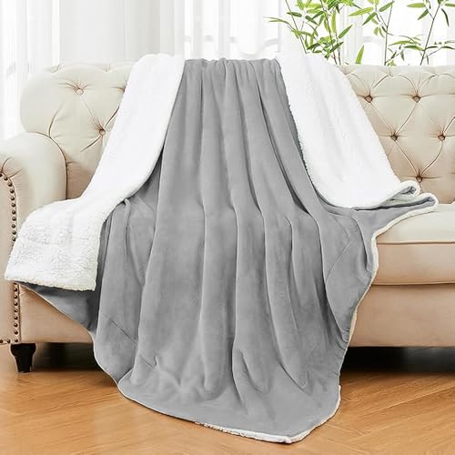 Casabella Sherpa Fleece Blanket - Plush Sofa Throw, Fleece Blanket for King Size Bed - Thick Warm Throw Blanket - Soft Fluffy Bedding, Travel Accessories - King Size Bed, Silver, 200x240cm