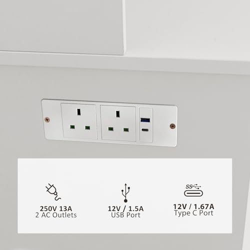 The nightstand features 2 AC outlets, 1 USB port, and 1 Type-C charging port, allowing you to charge multiple devices simultaneously.