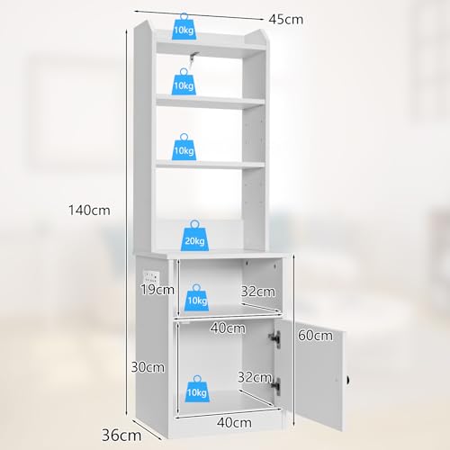 The table top can hold up to 20kg, while each shelf and the bottom cabinet can support up to 10kg, making it robust enough for your essentials.