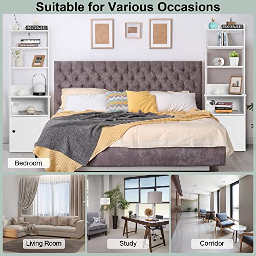 CASART Bedside Table with Charging Station, Wooden Nightstand with USB Port, Cabinet & Adjustable Shelves, Tall Bedside Cabinet End Table for Living Room Bedroom, 45 x 36 x 140cm (White)