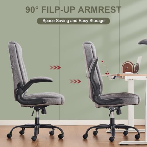 CASTLOVE Ergonomic Office Chair Computer Chair Executive Office Chair with Flip Up Armrest High Back Tilt Function Height Adjustable Comfortable Desk Chair for Home Office Fabric Grey