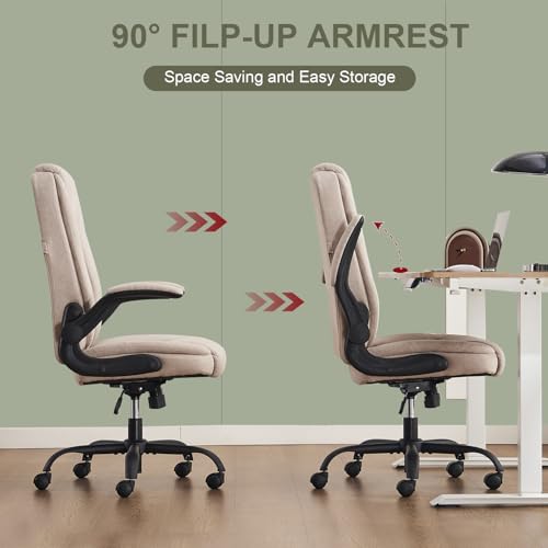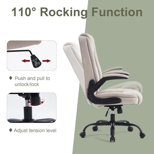 CASTLOVE Ergonomic Office Chair Computer Chair Executive Office Chair with Flip Up Armrest High Back Rocking Function Height Adjustable Comfortable Desk Chair for Home Office Fabric Cream