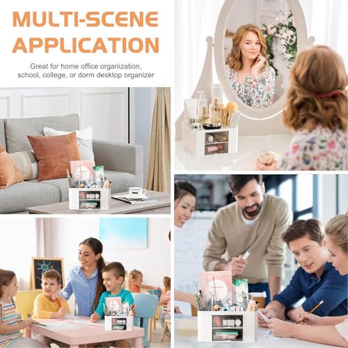 Cayxenful Desk Organiser with 2 Drawers, Plastic Table Stationary Organiser, Desk Tidy Organiser with 5 Compartments Desktop Storage Holder Stationery Supplies Organizer For Office School Home(White)