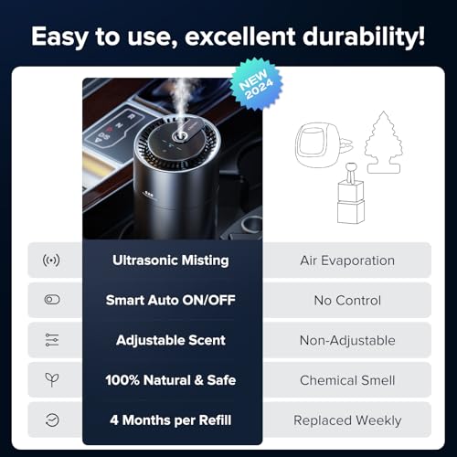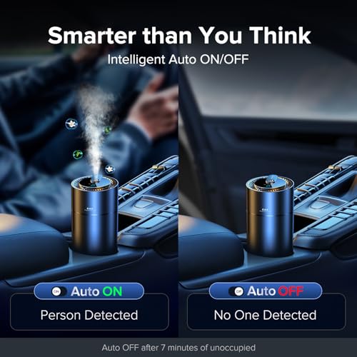 Ceeniu Smart Car Air Freshener, Waterless Ultrasonic, Auto ON/OFF, Plug-Free, Pure Cologne Scent, French Natural Fragrance, 4-Month Supply, F26 Car Aroma Diffuser